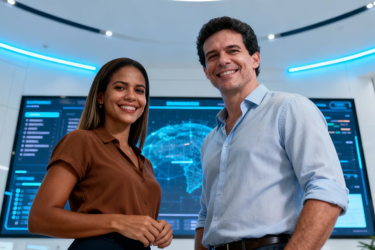 Este é o ápice da transformação. Conectamos seus sistemas via APIs, centralizamos suas informações em Data Lakes estruturados e implementamos soluções de Inteligência Artificial para analisar esses dados. O resultado? Deixamos de apenas garantir sua operação e passamos a otimizá-la, revelando padrões, prevendo tendências e entregando insights que geram redução de custos e novas fontes de receita.